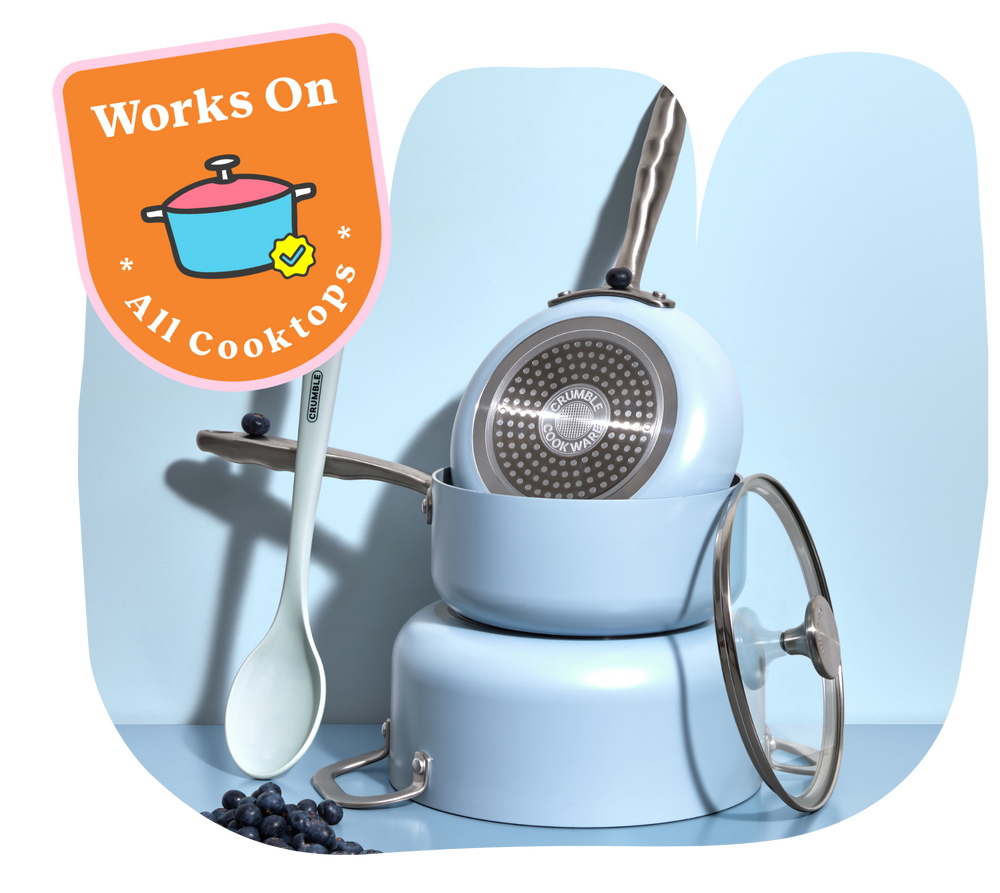 No one wants heaps of heavy, clunky pots and pans. Crumble’s ceramic range is light enough to use every day, yet strong enough to handle high heat and regular use. And when it’s time to clean up? Food slides right off – no soaking, no scrubbing, and yes, it’s dishwasher safe too.
