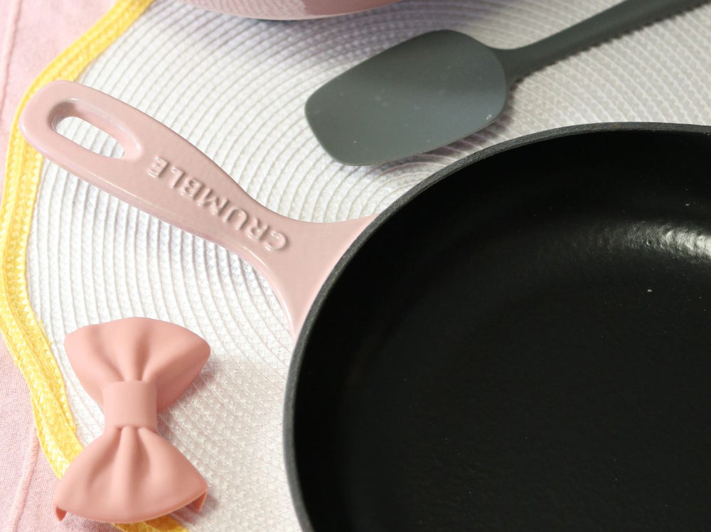 Bonus utensils made specifically for your Crumble goodies are included with your order, but in general we recommend either wood or silicone to preserve the surface of your cookware.