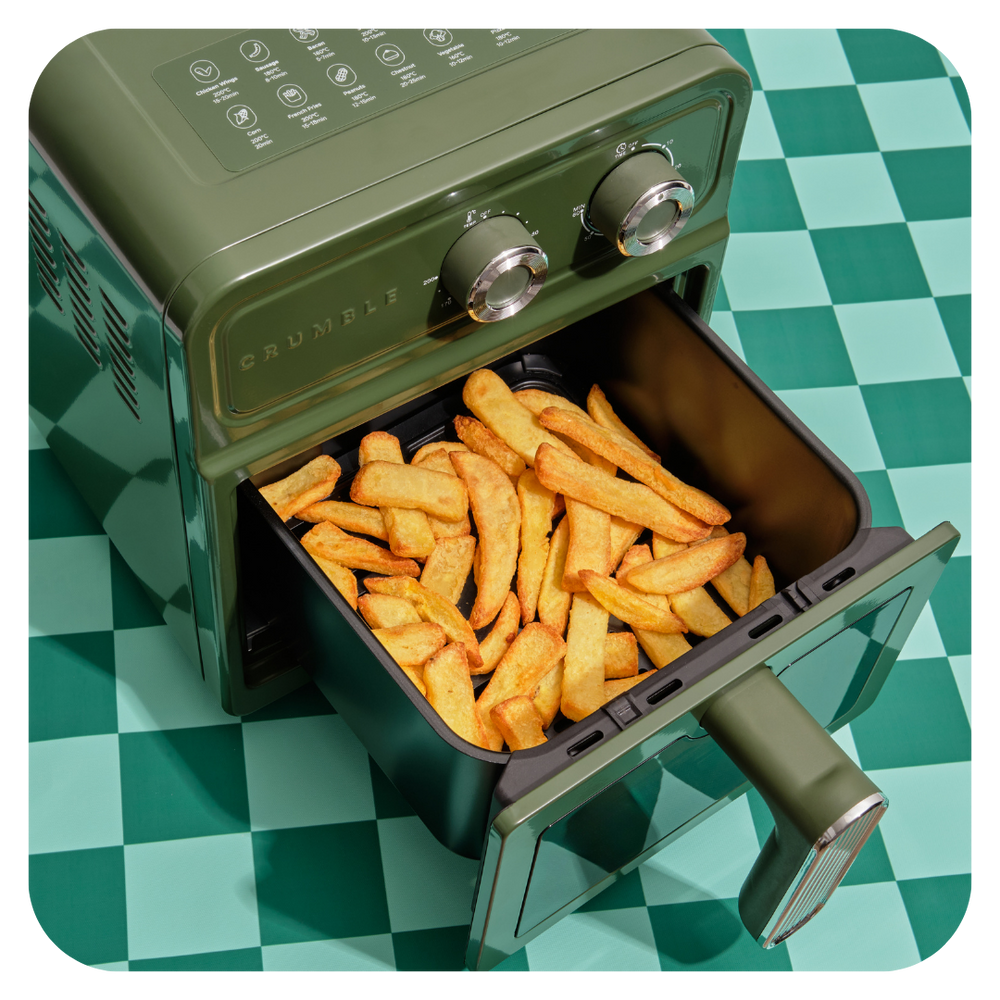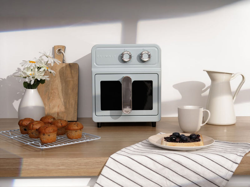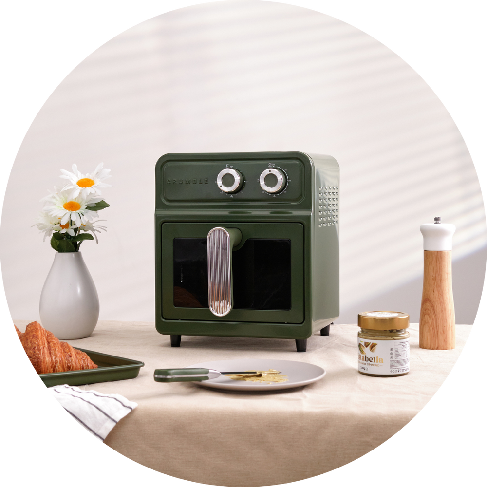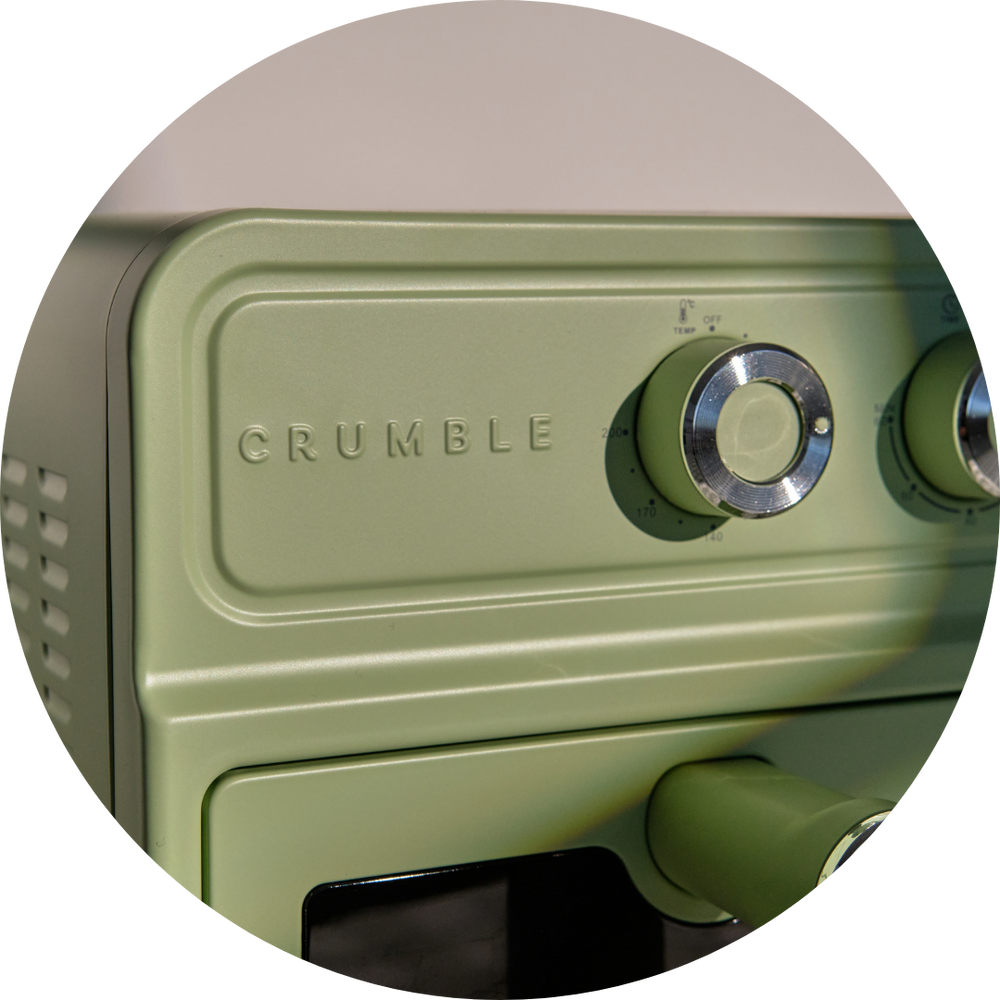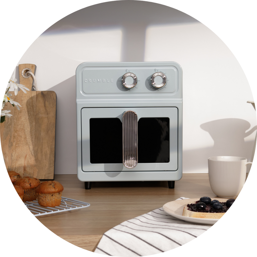 Indulge in healthy cooking every day with the Crumble Air Fryer. Its elegant design sits beautifully on the countertop and complements any kitchen aesthetic. Its capacity is 6 Litres, large enough to roast a chicken and unlike most Air Fryers, ours is made from Carbon Steel, meaning no nasty plastic smells.