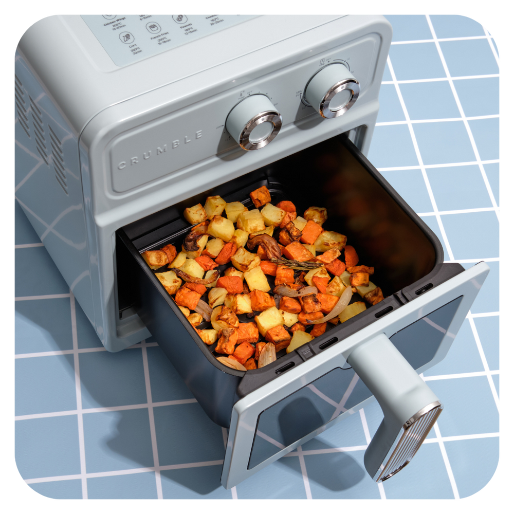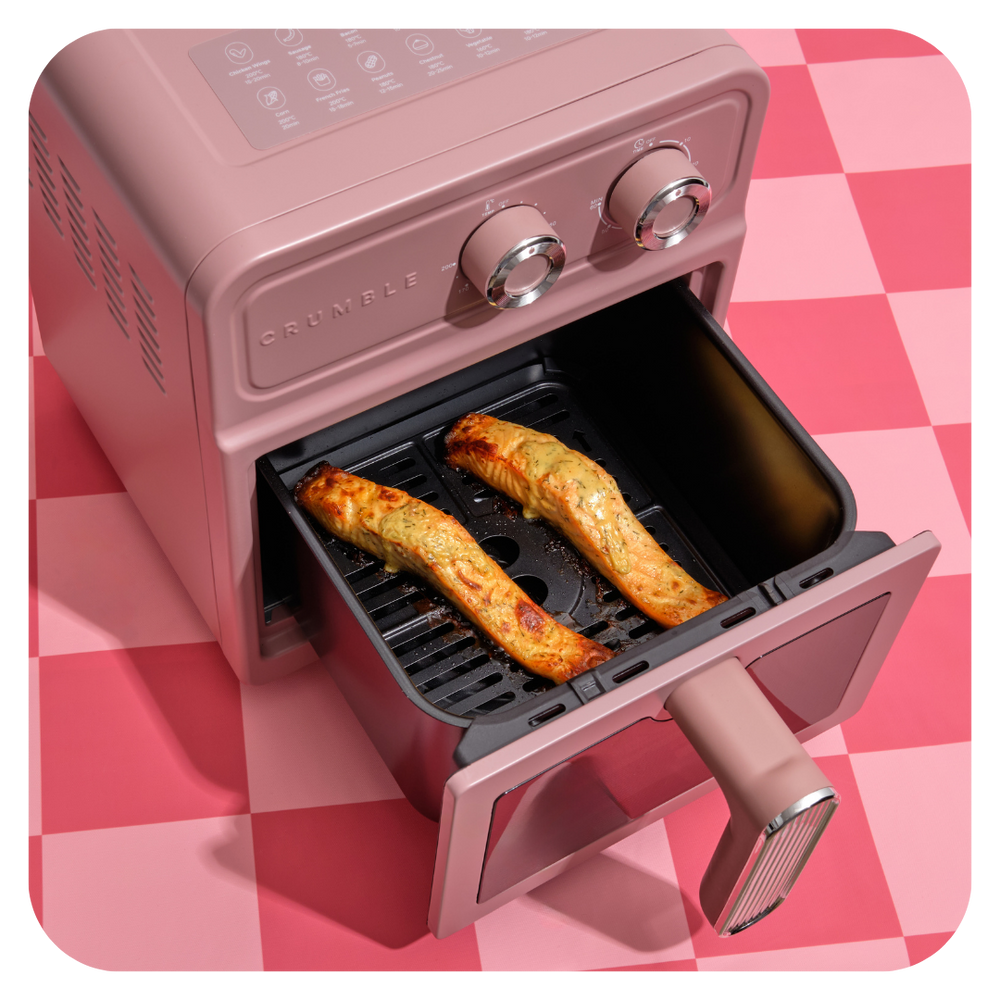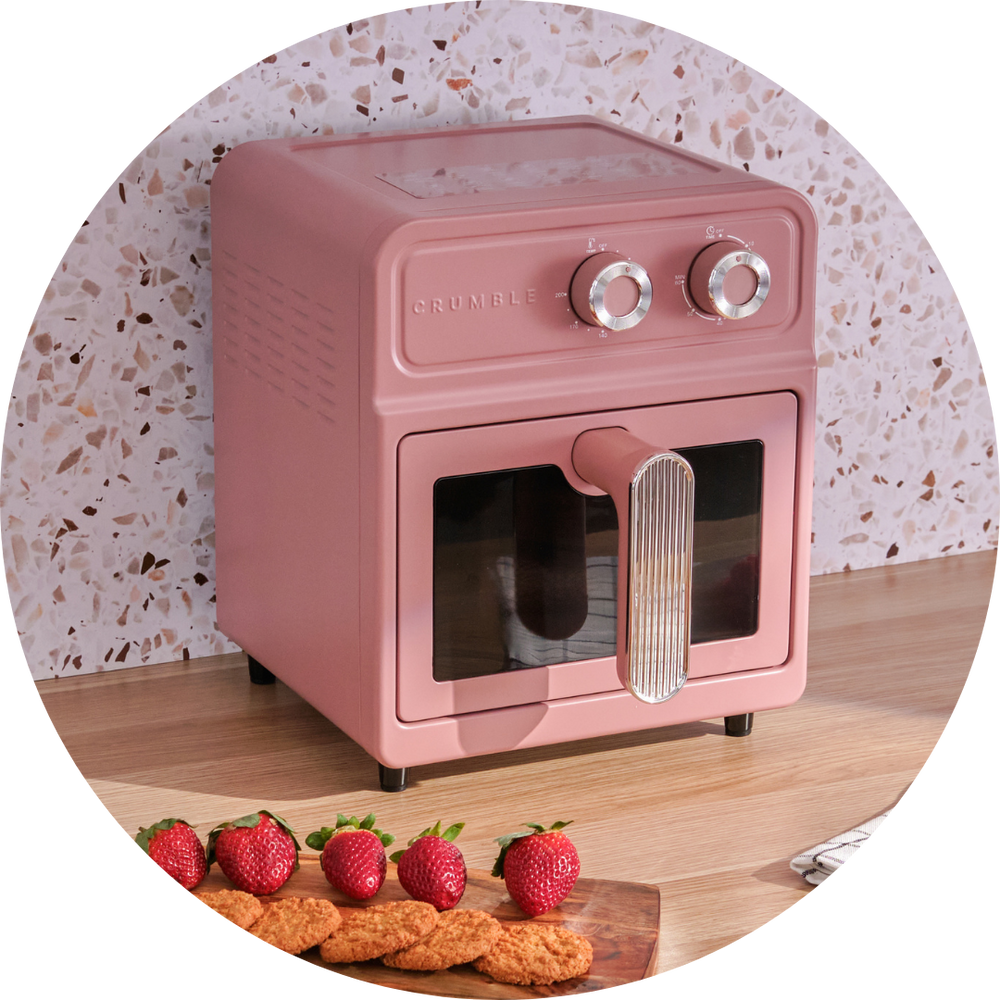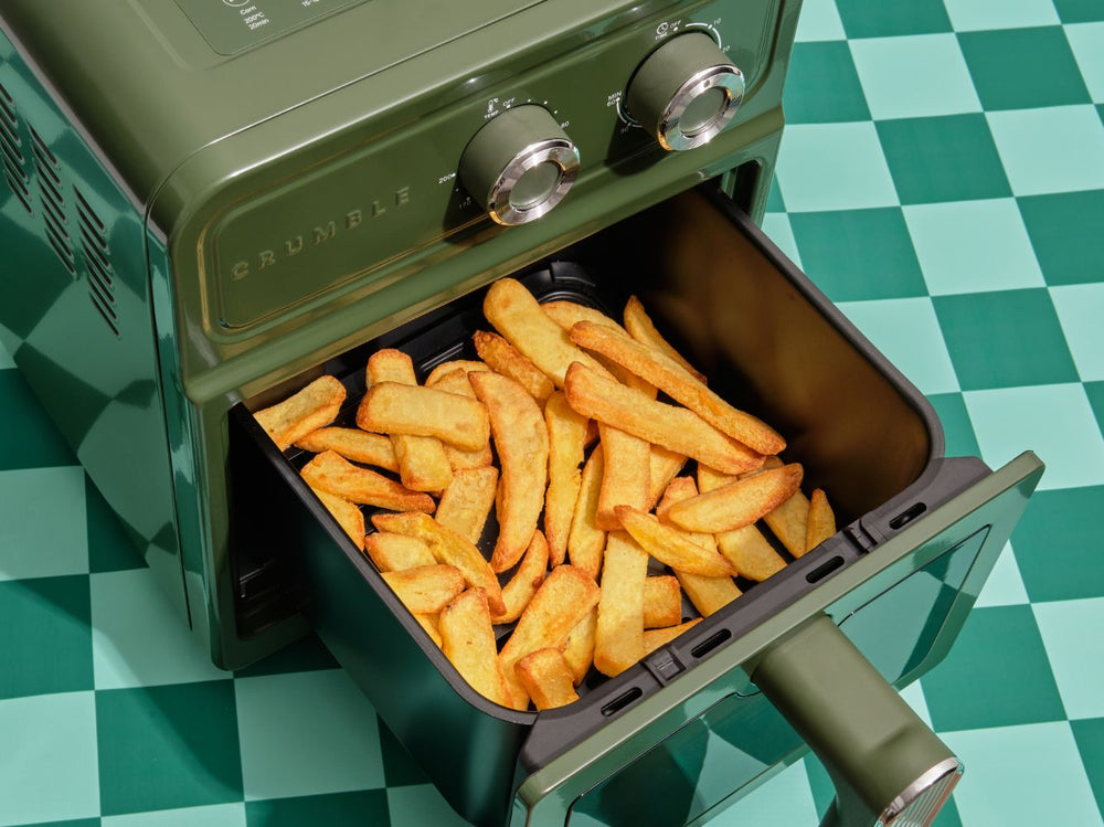 Indulge in healthy cooking every day with the Crumble Air Fryer. Its elegant design sits beautifully on the countertop and complements any kitchen aesthetic. Its capacity is 6 Litres, large enough to roast a chicken and unlike most Air Fryers, ours is made from Carbon Steel, meaning no nasty plastic smells.