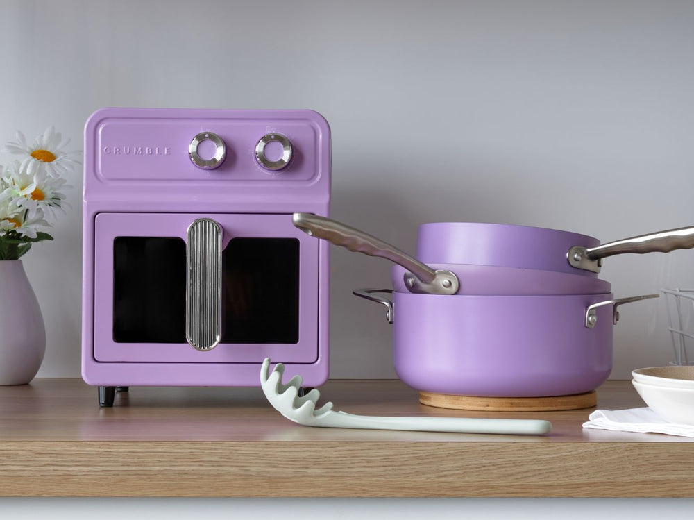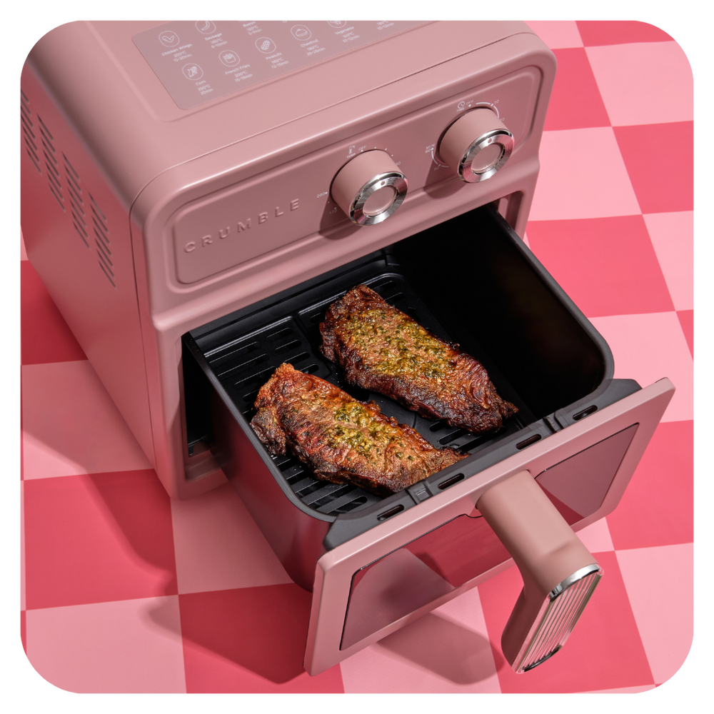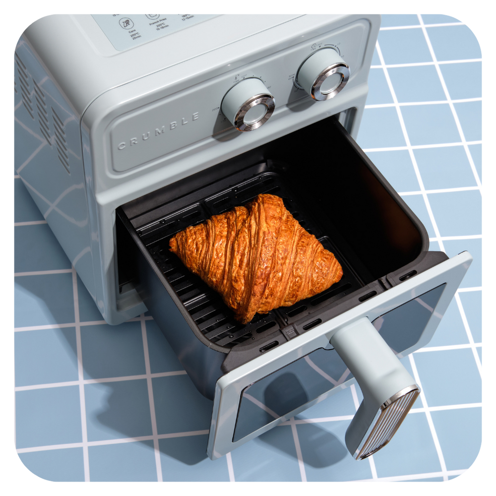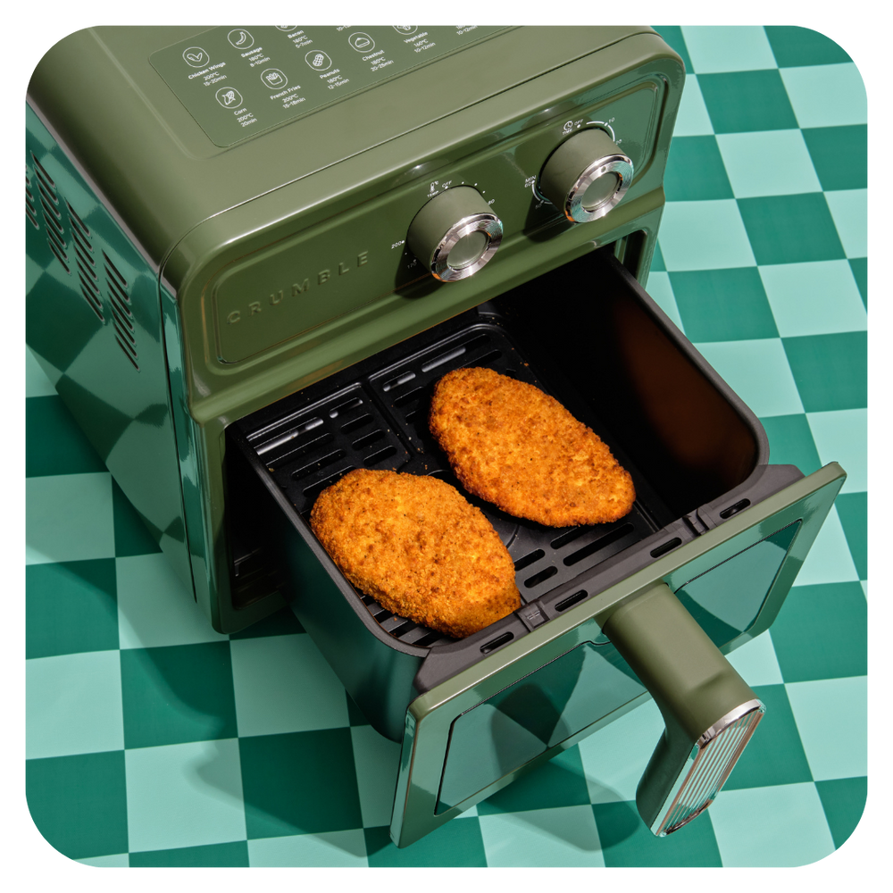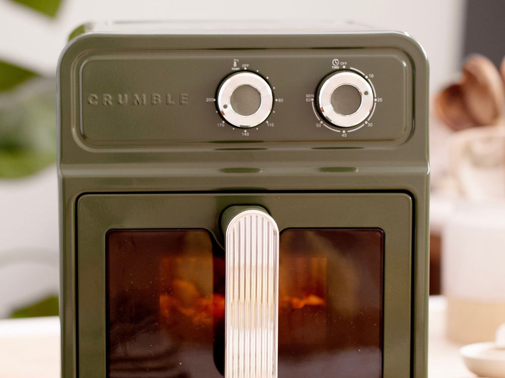 Indulge in healthy cooking every day with the Crumble Air Fryer. Its elegant design sits beautifully on the countertop and complements any kitchen aesthetic. Its capacity is 6 Litres, large enough to roast a chicken and unlike most Air Fryers, ours is made from Carbon Steel, meaning no nasty plastic smells.