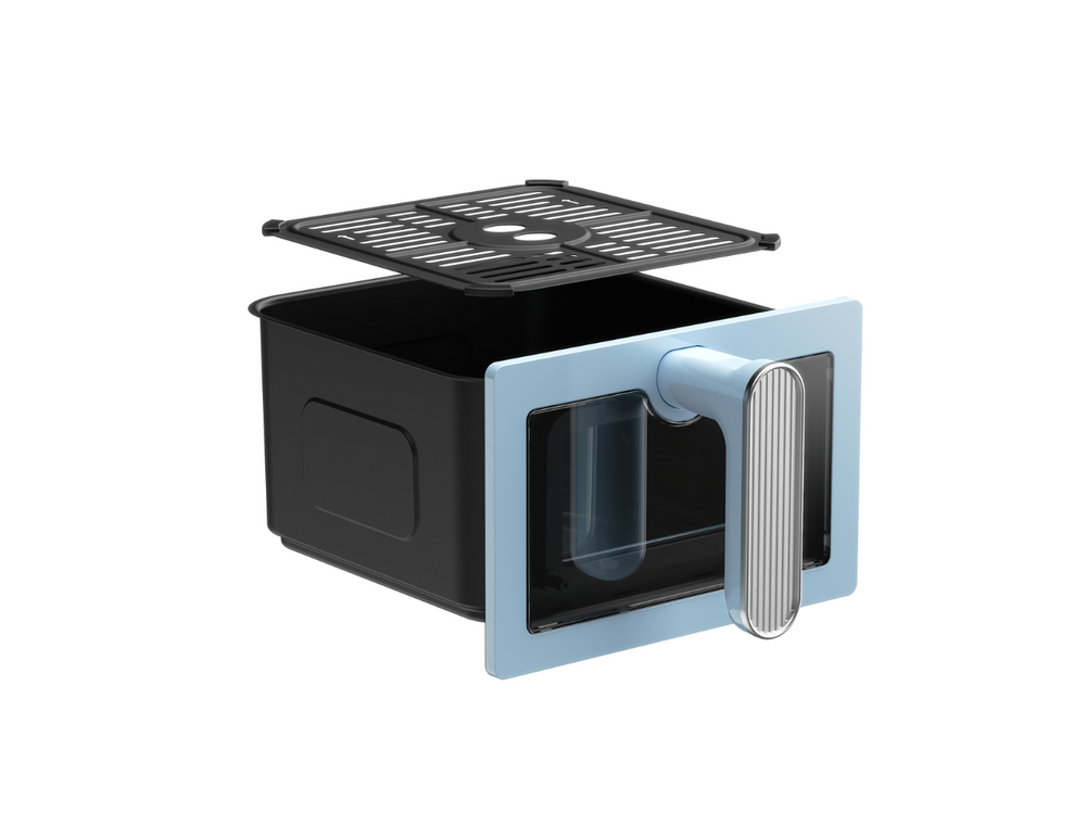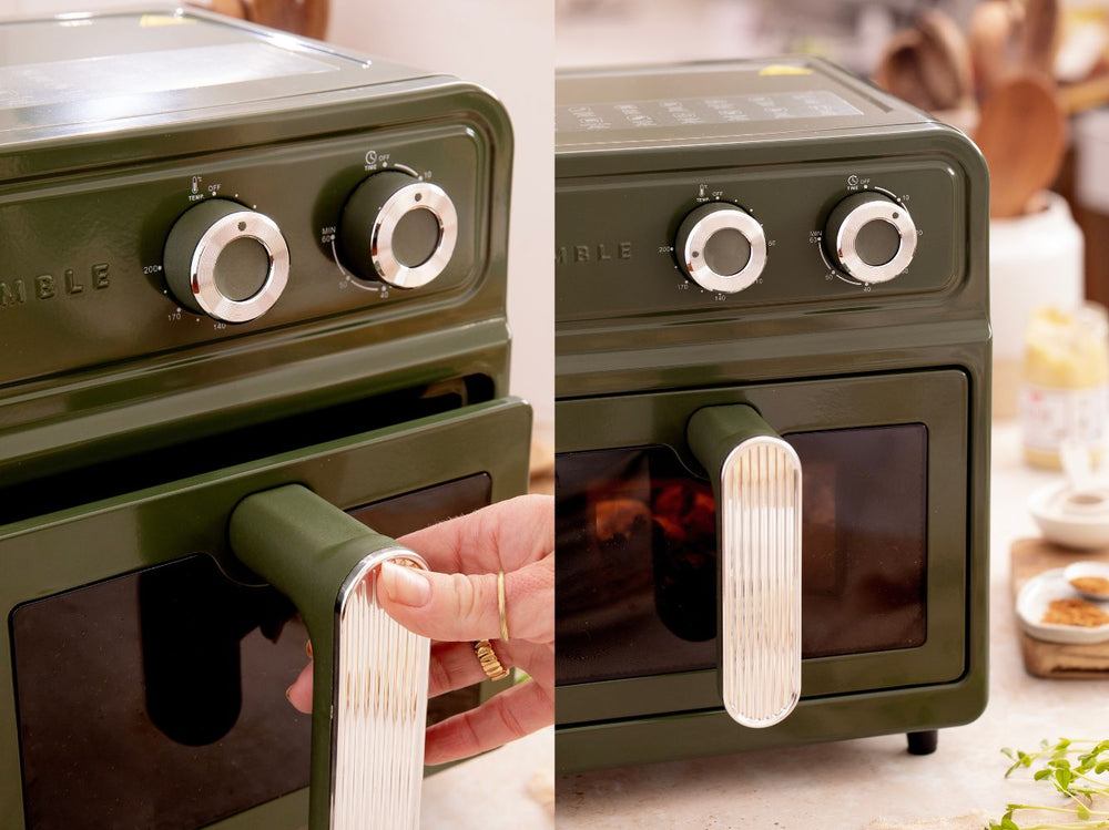 Indulge in healthy cooking every day with the Crumble Air Fryer. Its elegant design sits beautifully on the countertop and complements any kitchen aesthetic. Its capacity is 6 Litres, large enough to roast a chicken and unlike most Air Fryers, ours is made from Carbon Steel, meaning no nasty plastic smells.