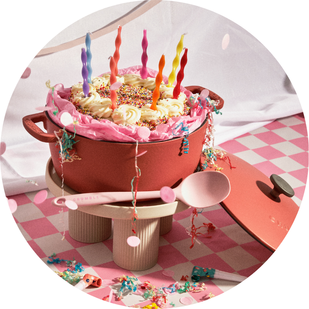 Bonus utensils made specifically for your Crumble goodies are included with your order, but in general we recommend either wood or silicone to preserve the surface of your cookware.