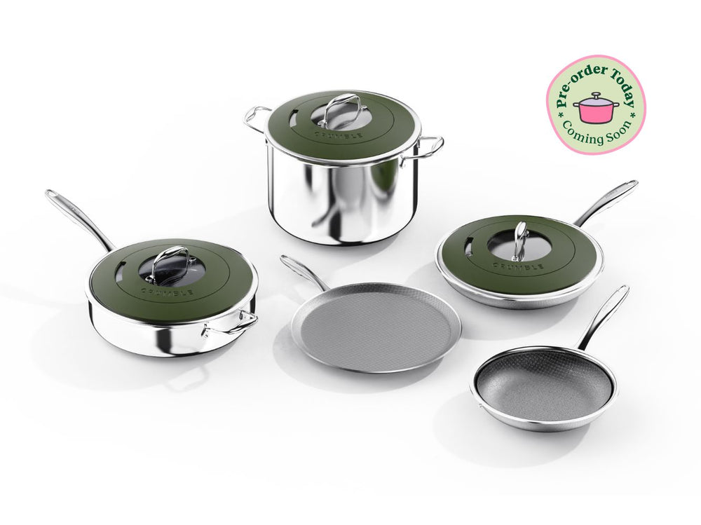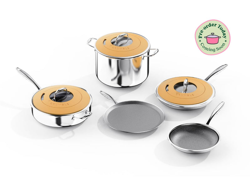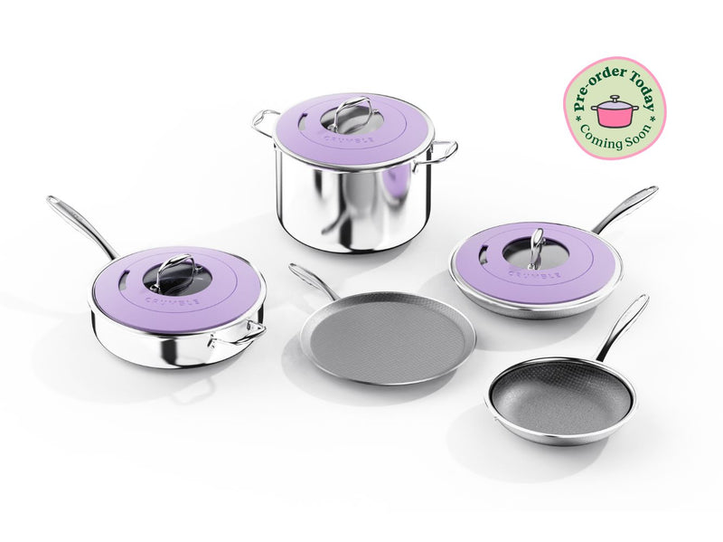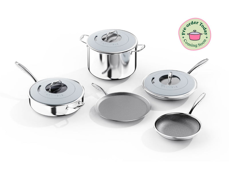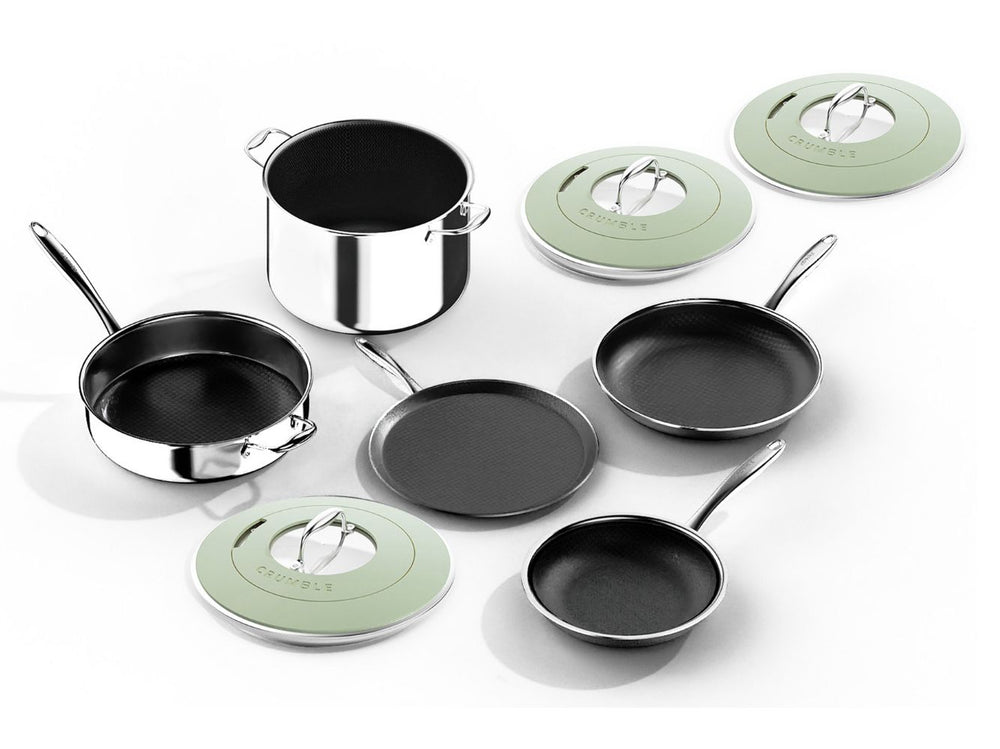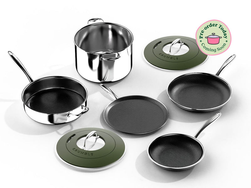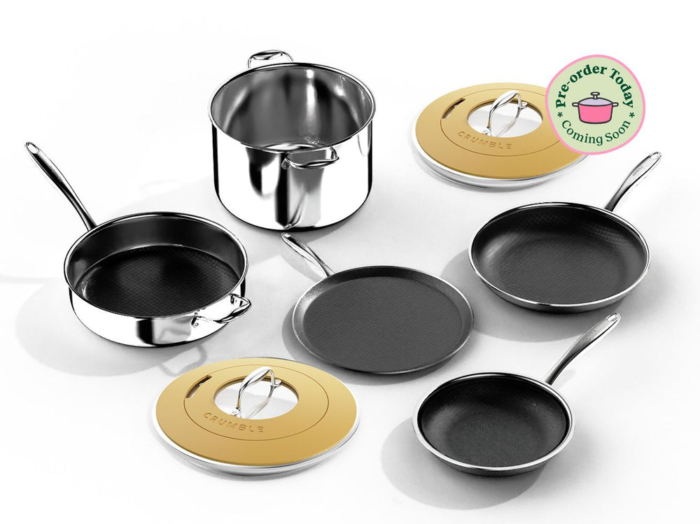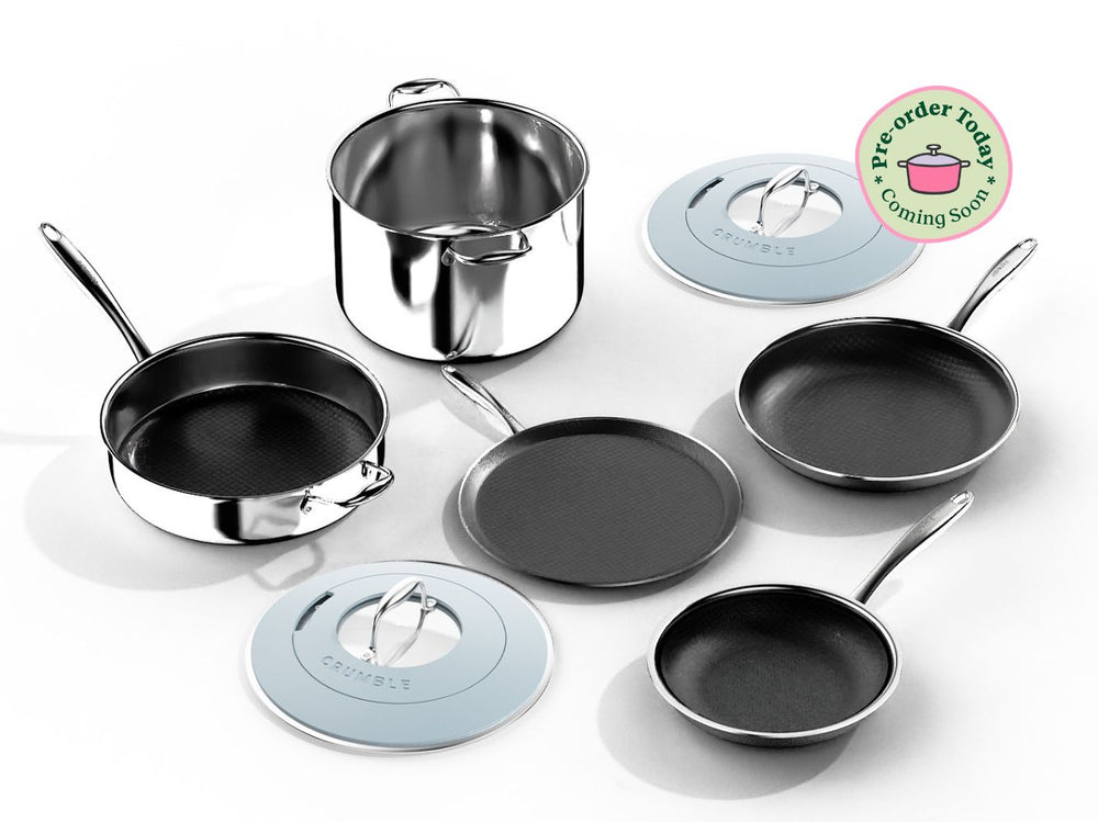 Introducing CrumbleCoat™ - combining the best of stainless steel and non-stick into one sleek, durable pan featuring our signature pattern for superior searing, effortless food release, heat distribution and ultimate durability.