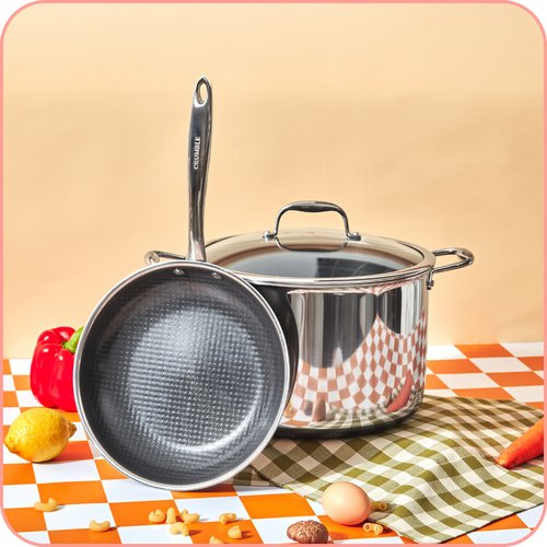Our signature raised pattern is designed to maintain performance for far longer than your traditional non-stick pan, even allowing the use of metal utensils.