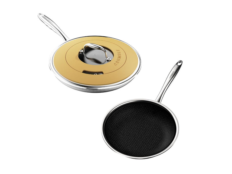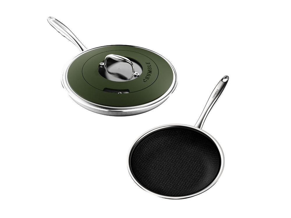 Introducing CrumbleCoat™ - combining the best of stainless steel and non-stick into one sleek, durable pan featuring our signature pattern for superior searing, effortless food release, heat distribution and ultimate durability.