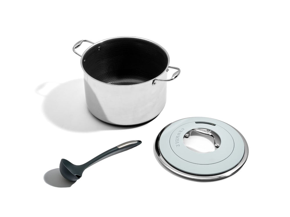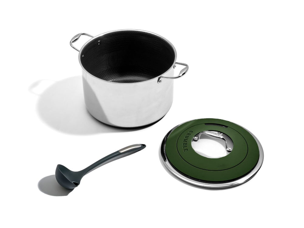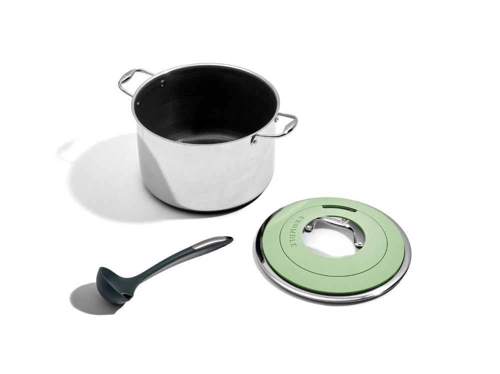 Introducing CrumbleCoat™ - combining the best of stainless steel and non-stick into one sleek, durable pan featuring our signature pattern for superior searing, effortless food release, heat distribution and ultimate durability.