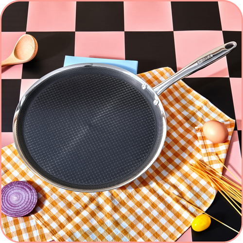 Our signature raised pattern is designed to maintain performance for far longer than your traditional non-stick pan, even allowing the use of metal utensils.