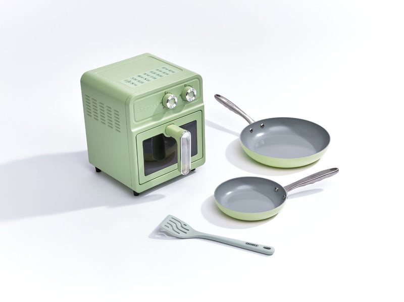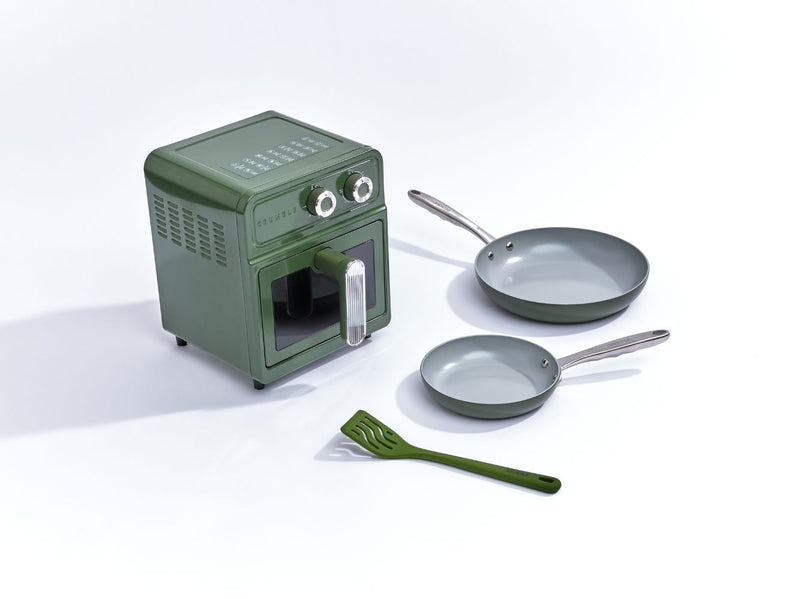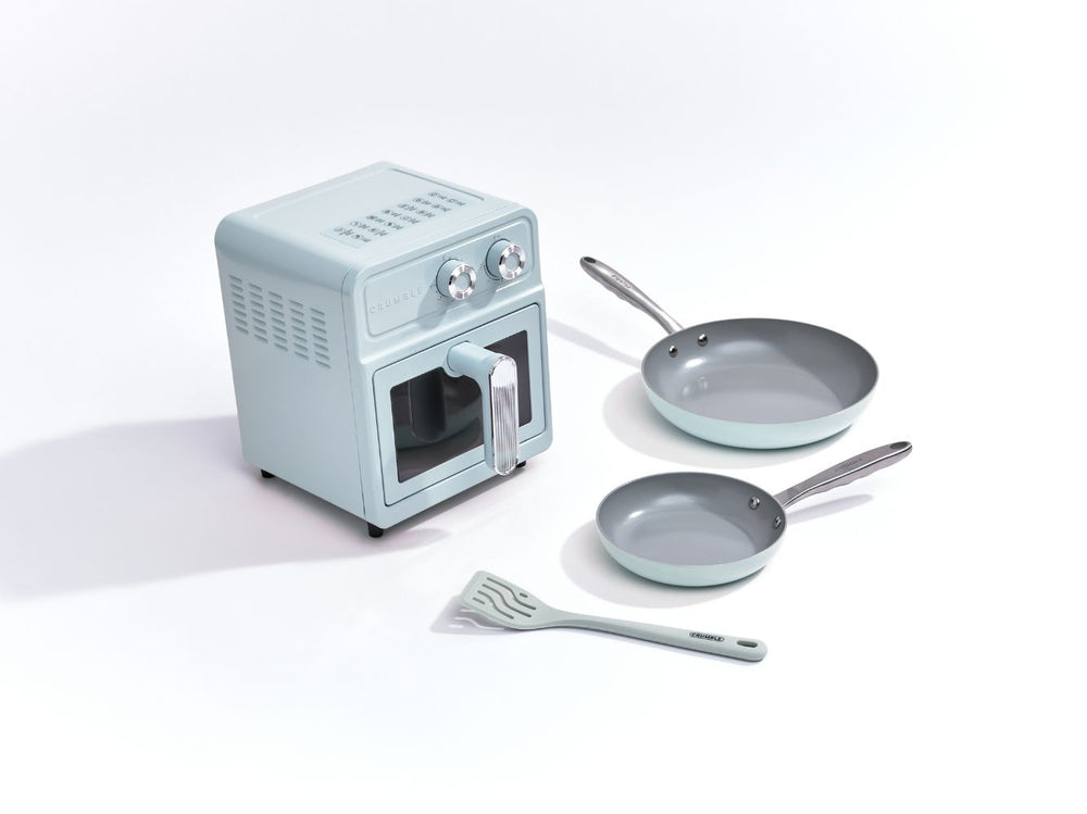 The perfect mini bundle will equip you with two non-stick fry pans (20cm and 28cm) plus a 6L Crumble Air Fryer for added versatility. Great for smaller kitchens without an oven.Â