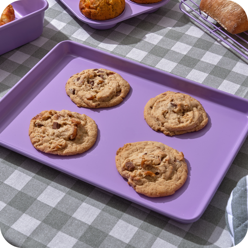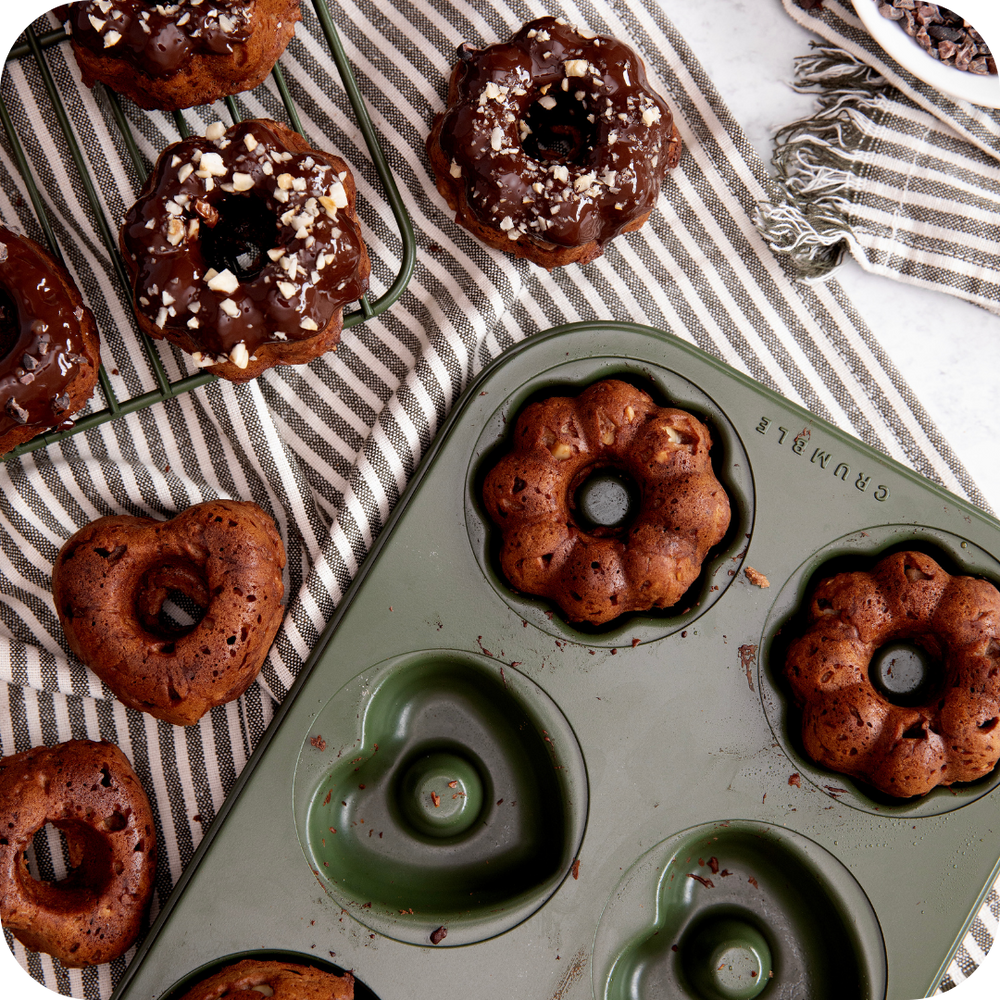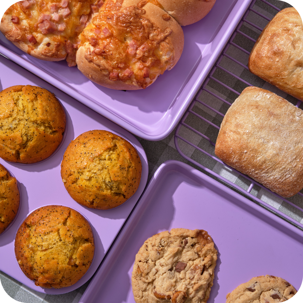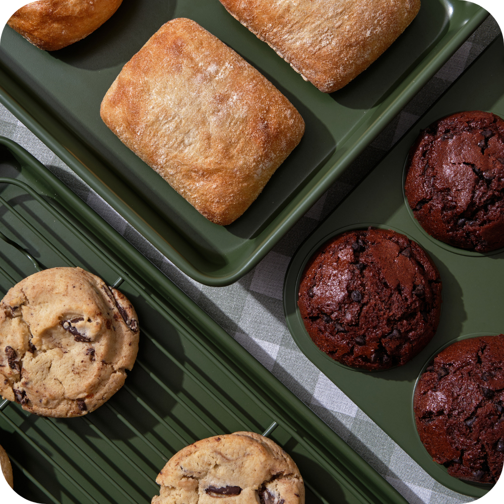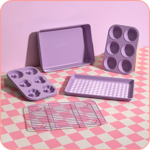 Unleash your inner baker with this all-in-one bakeware set. Whether you're whipping up cupcakes, donuts, brownies or cookies, this set has everything you need to create, bake and cool like a pro.Â