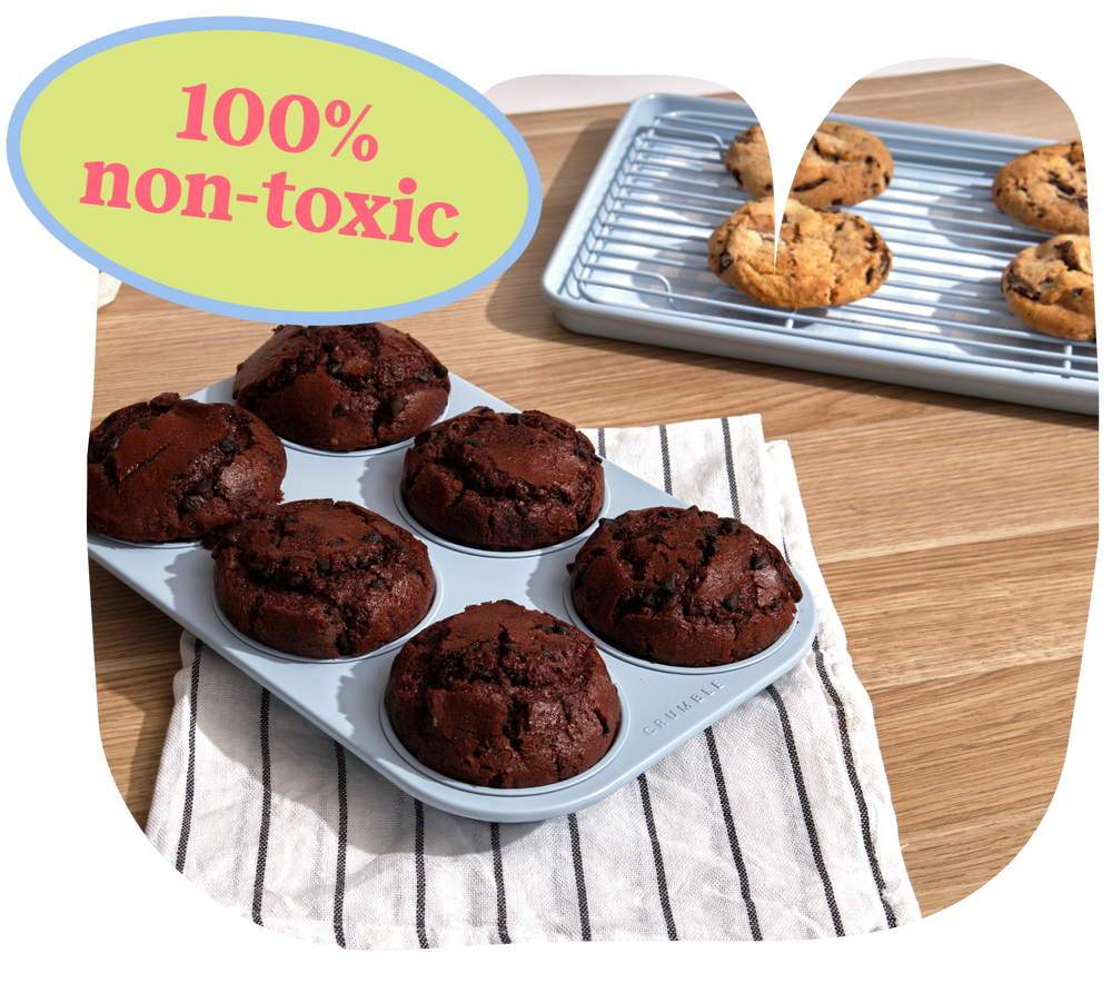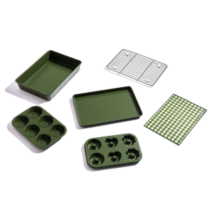 Our baking set is coated with a non-toxic, organic non-stick silicone that does not require greasing.