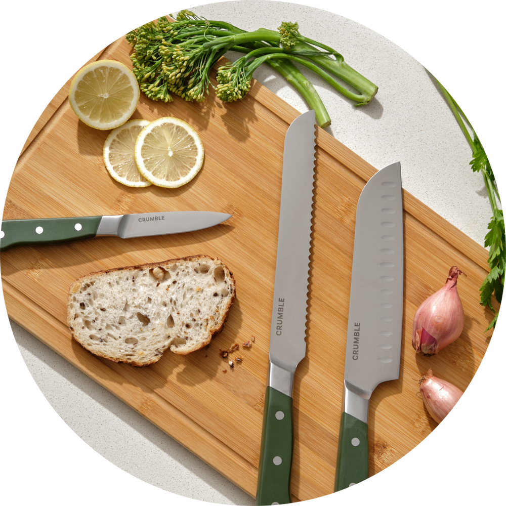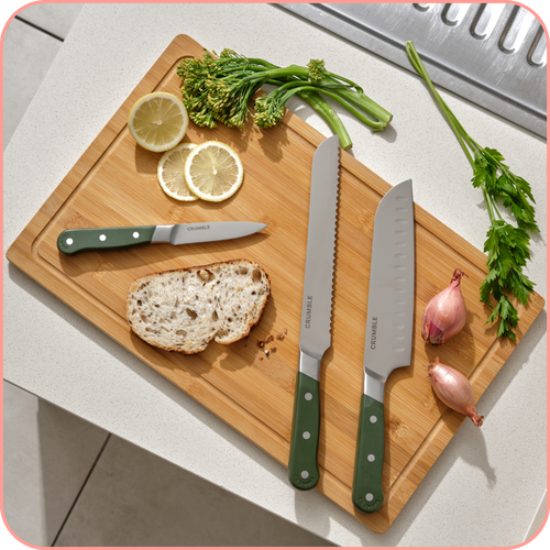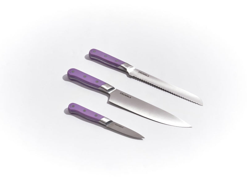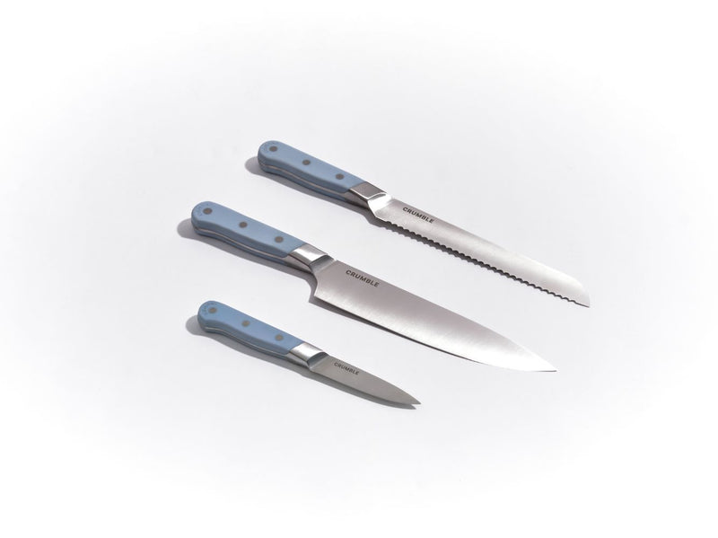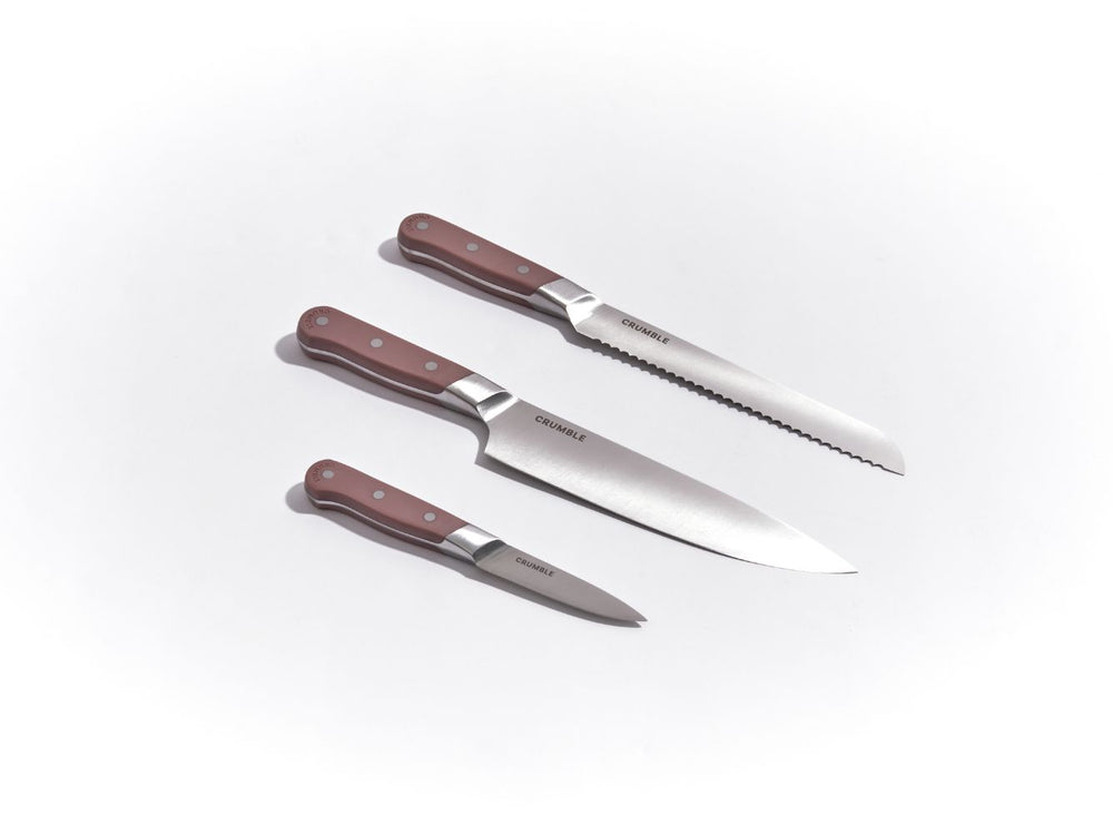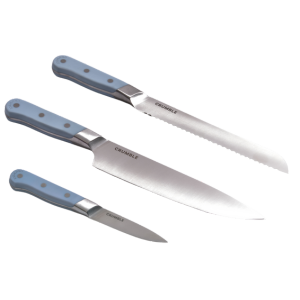 The Essential Knife Set features three must-have knives for any kitchen -Â the Chef Knife, Pairing Knife and Bread Knife which offer maximum versatility while saving space.Â