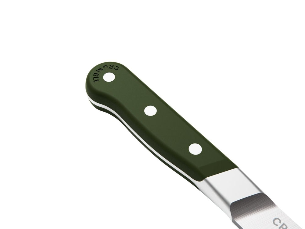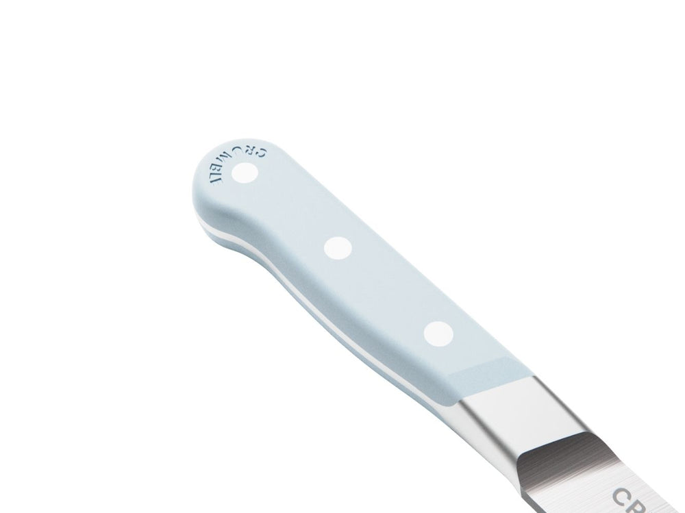 Crumble knives are built to stay sharper for longer and may only need sharpening after 4-5 months of use. Any generic sharpener will work just fine.